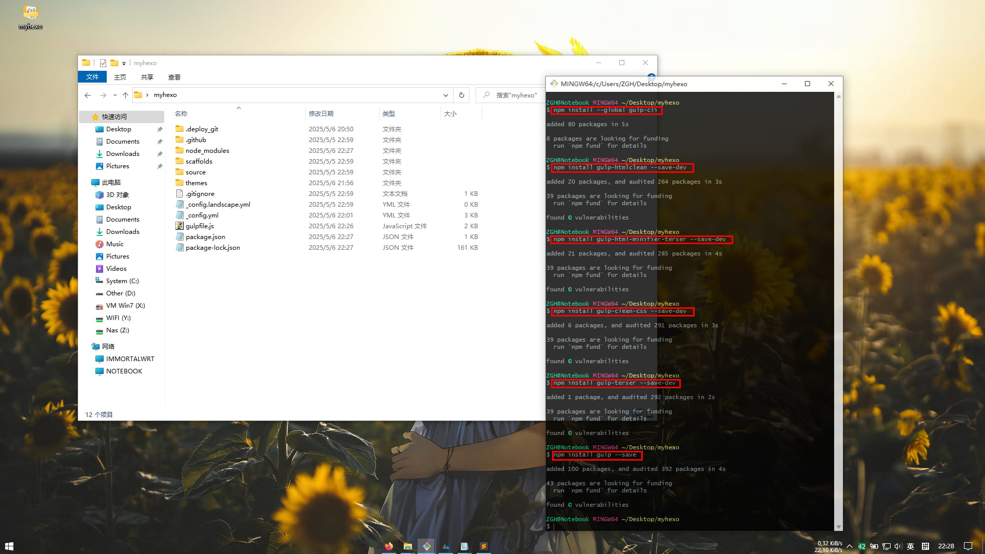 在 Hexo 目录下,鼠标右键打开 git bash 命令窗口,执行以下命令