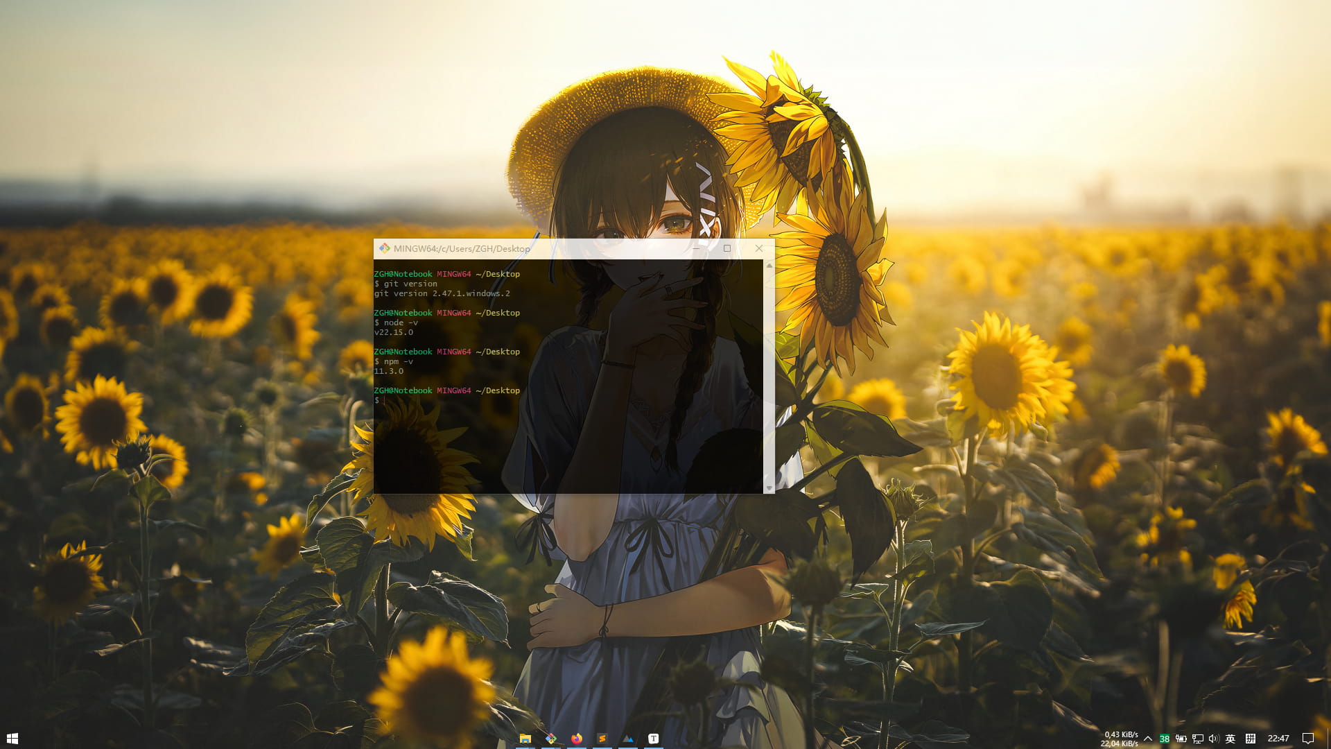 环境安装成功后,在桌面单击鼠标右键打开 Git Bash,输入以下命令验证是否成功,成功则会出现相应的版本号。