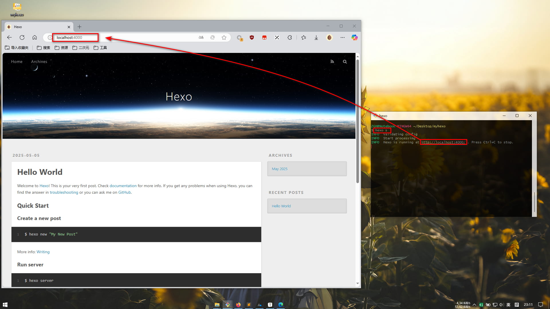 # 初始化 (myhexo是用于存放网站的文件夹,名字可自定义)
